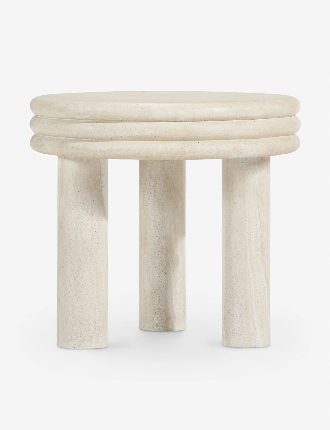 With its clean-round silhouette and tiered top softly supported by sculptural column legs, this side...