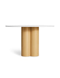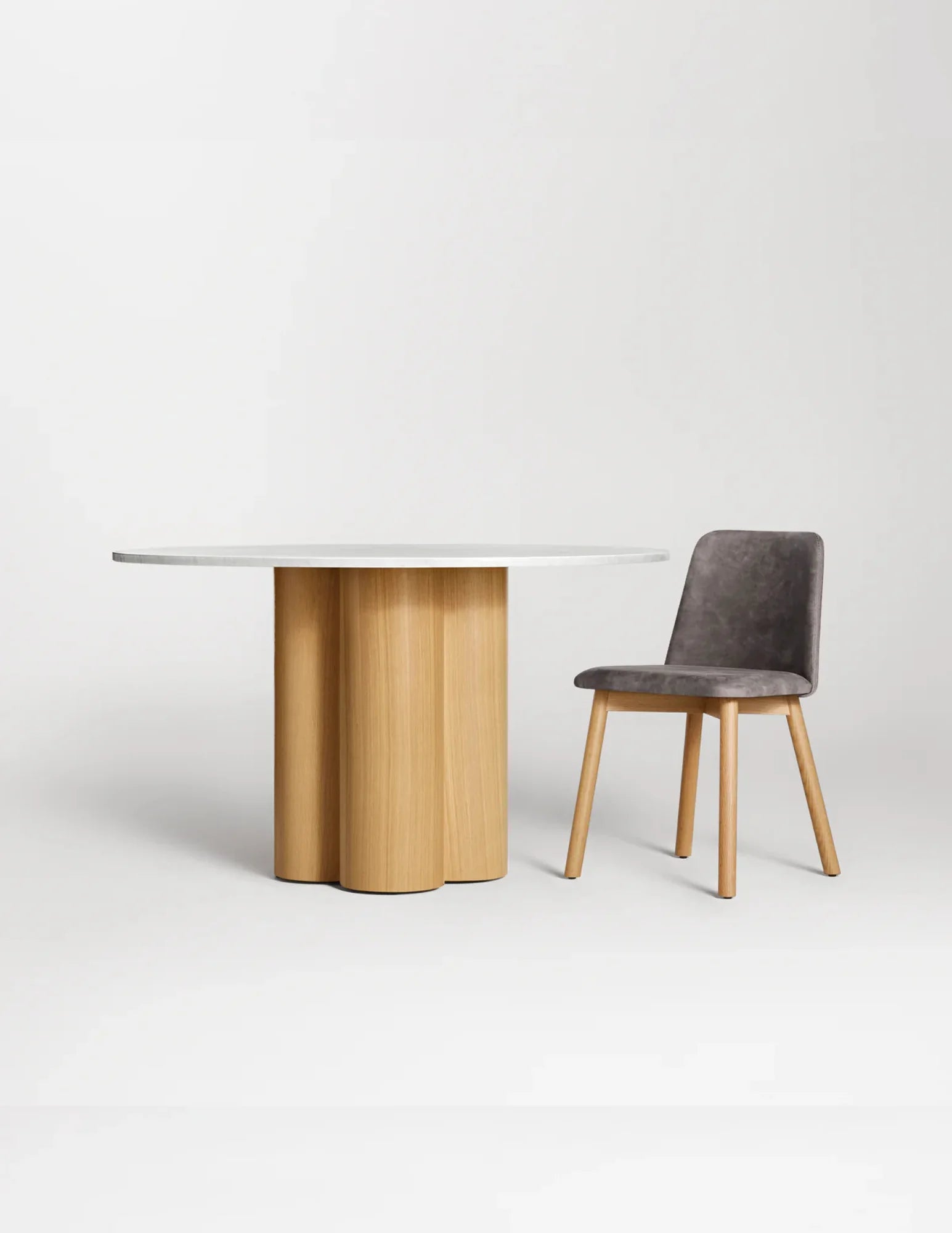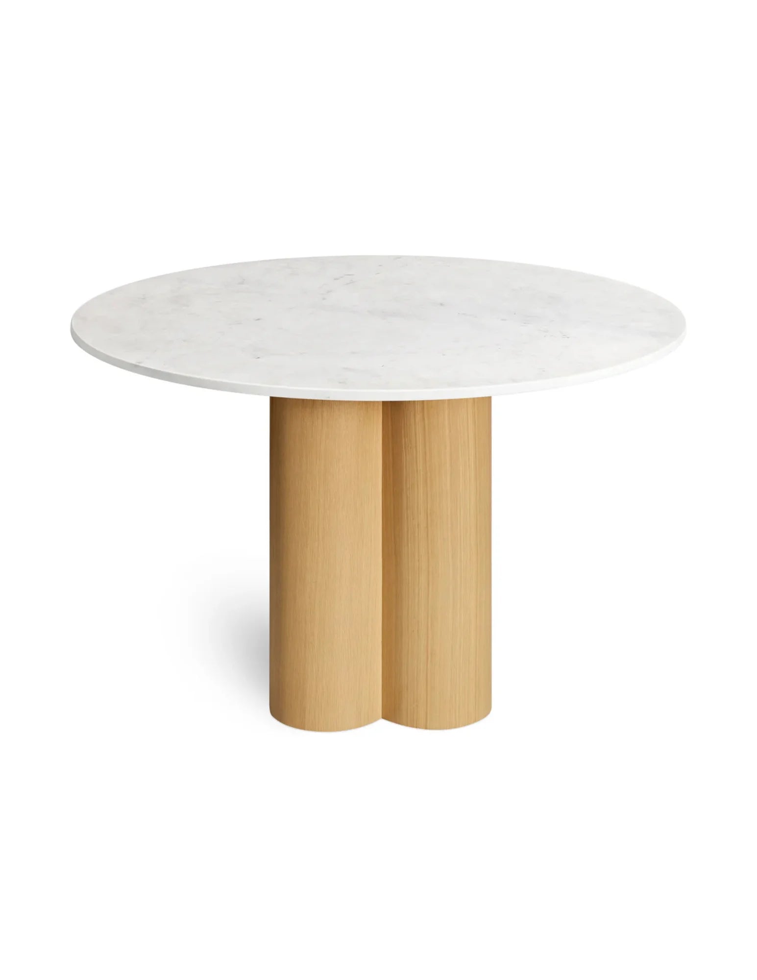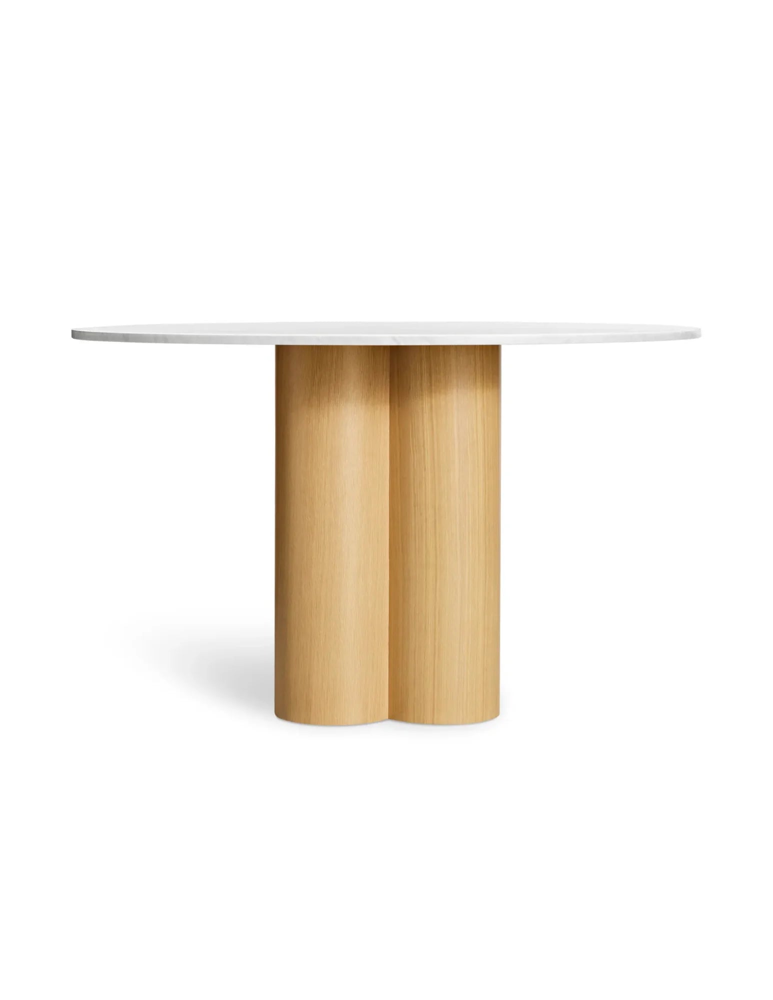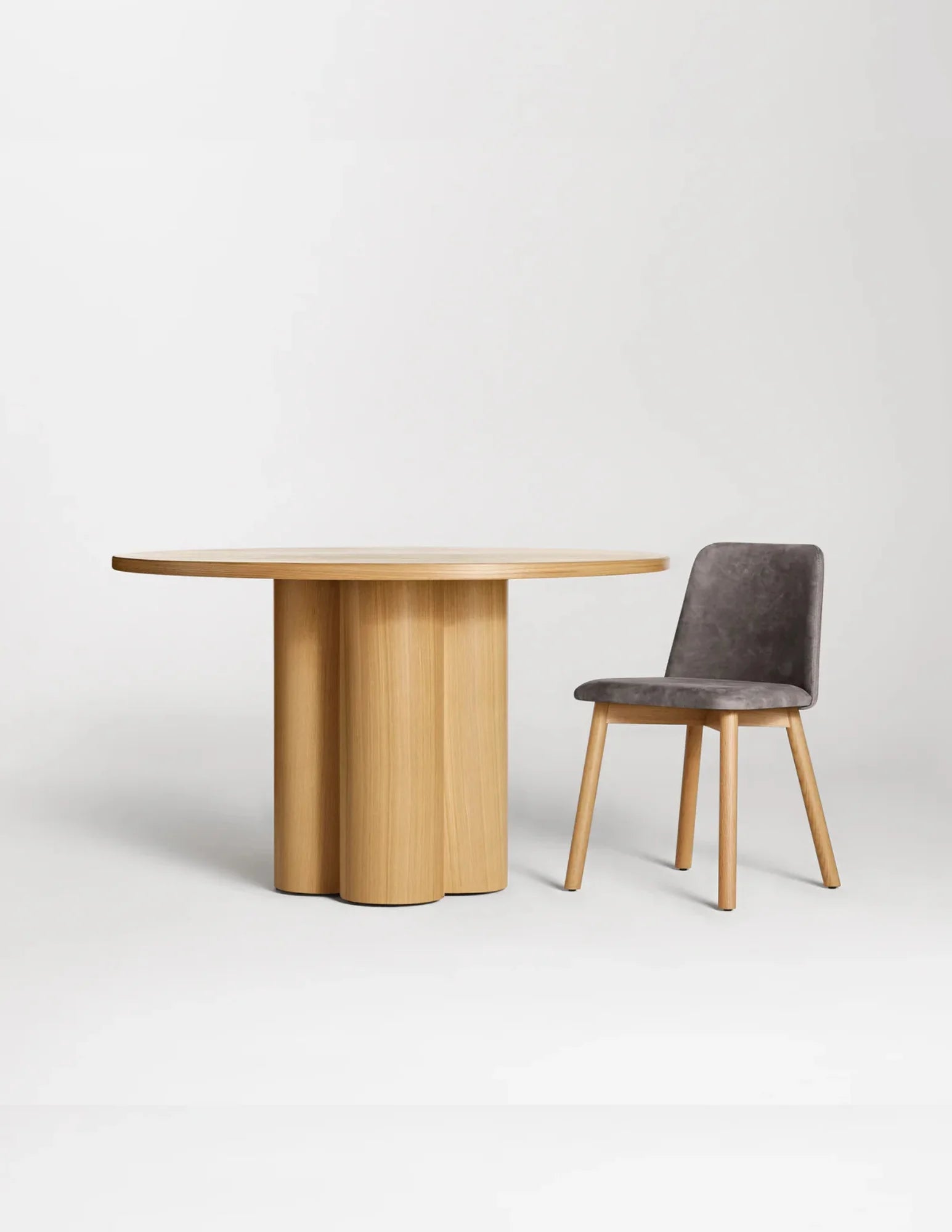 Traditional in form and finished with our Heritage Oak Finish, our Gilroy Round Oak Dining Table is refined yet organic. Practical and inviting, the round table comfortably seats four to six people. Its reeded base provides subtle texture to your dining room or kitchen nook styling.Β