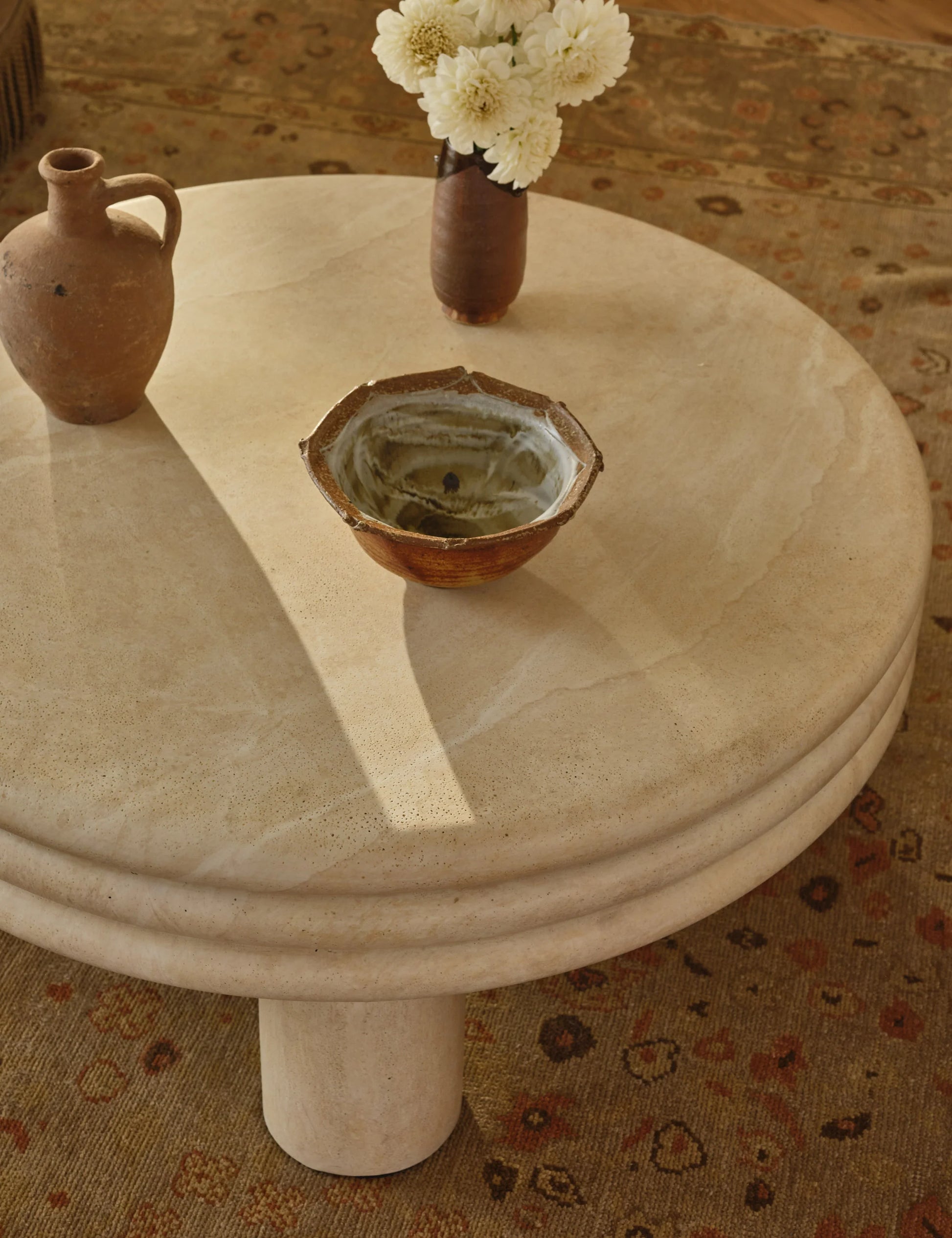 The Brittny Round Coffee Table elevates the everyday with a quietly sculptural formβits clean, circular profile balanced atop elegantly tapered legs brings a feeling of ease and refinement. The smooth faux travertine finish in creamy tones wraps the piece in organic warmth, while the tiered top adds depth and interest without overwhelming a lounge space. Designed to anchor relaxed living-room moments, it harmonizes function and artistry in equal measureβmaking it both a statement piece and a lasting foundation for how you live.