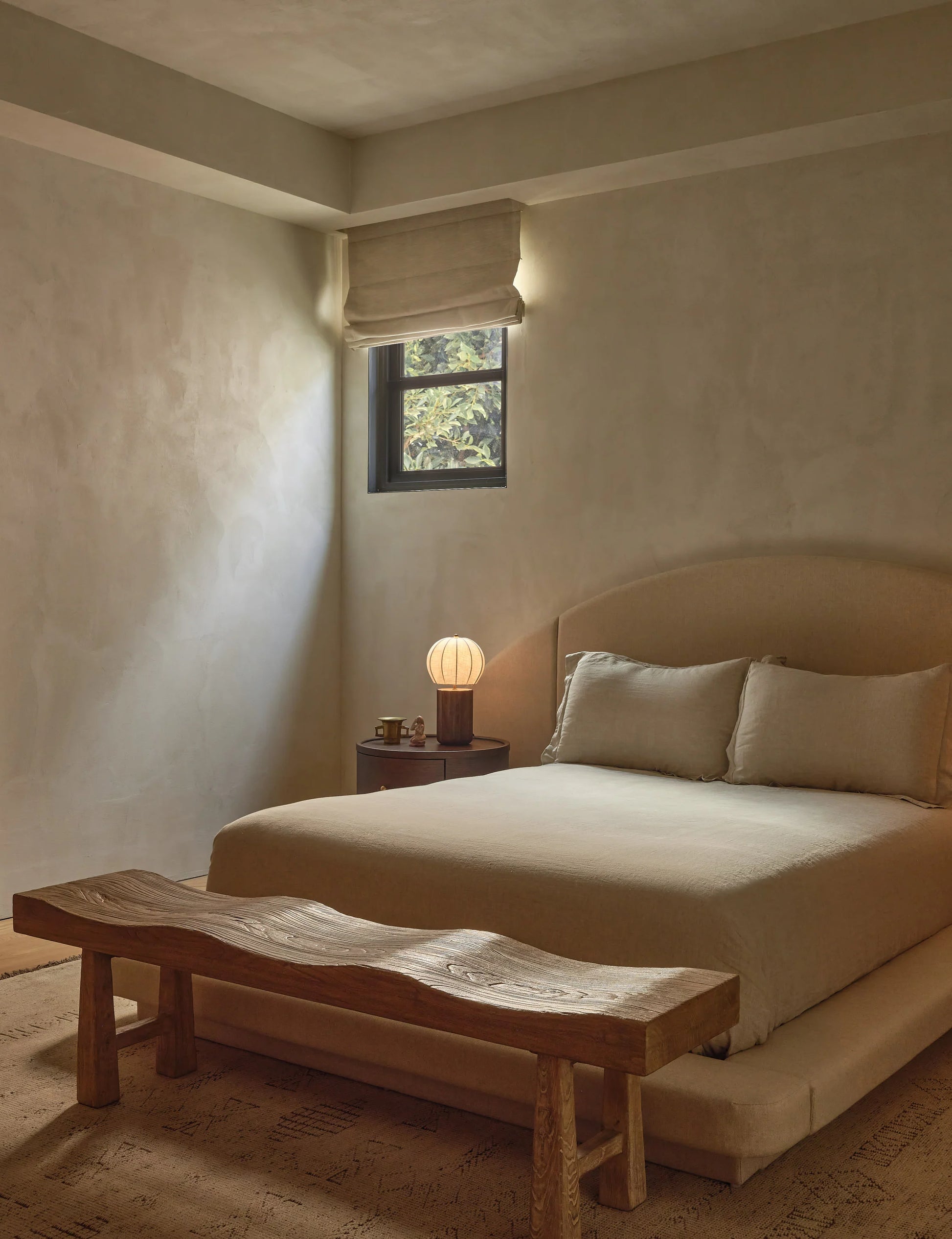 With its beautifully undulating reclaimed-elm seat and elegantly tapered base, this bench turns natural grain into quiet architecture. Crafted to show off the wood’s rich textures and varied tones, the piece brings sculptural warmth to an entryway, bedroom or hall. It’s both functional and artful — a statement of craftsmanship that fits effortlessly within modern, rustic, or eclectic interiors.