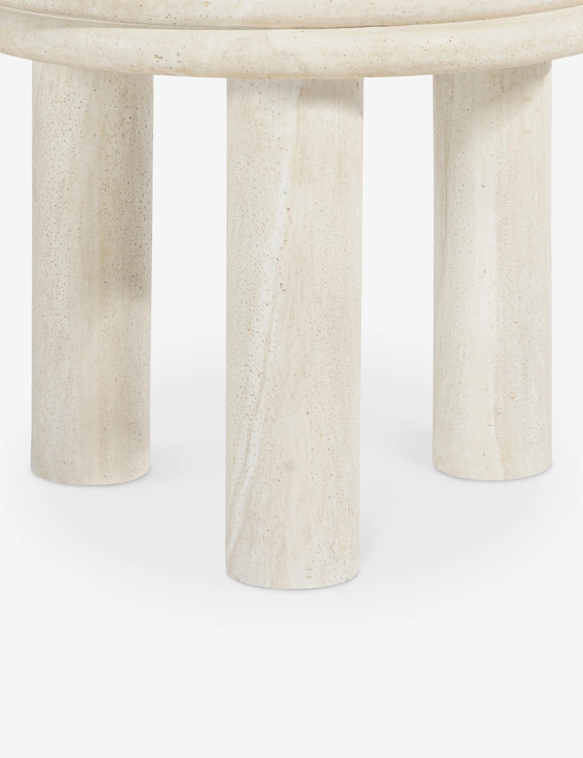 With its clean-round silhouette and tiered top softly supported by sculptural column legs, this side table brings architectural grace to everyday moments. The cream faux-travertine finish delivers an elegant, stone-like texture that adds warmth and light without overpowering your space. Compact yet impactful, it fits effortlessly beside a sofa or chair, or serves as a chic plant pedestal in an entrywayβbringing subtle luxury and visual calm to how you live.
